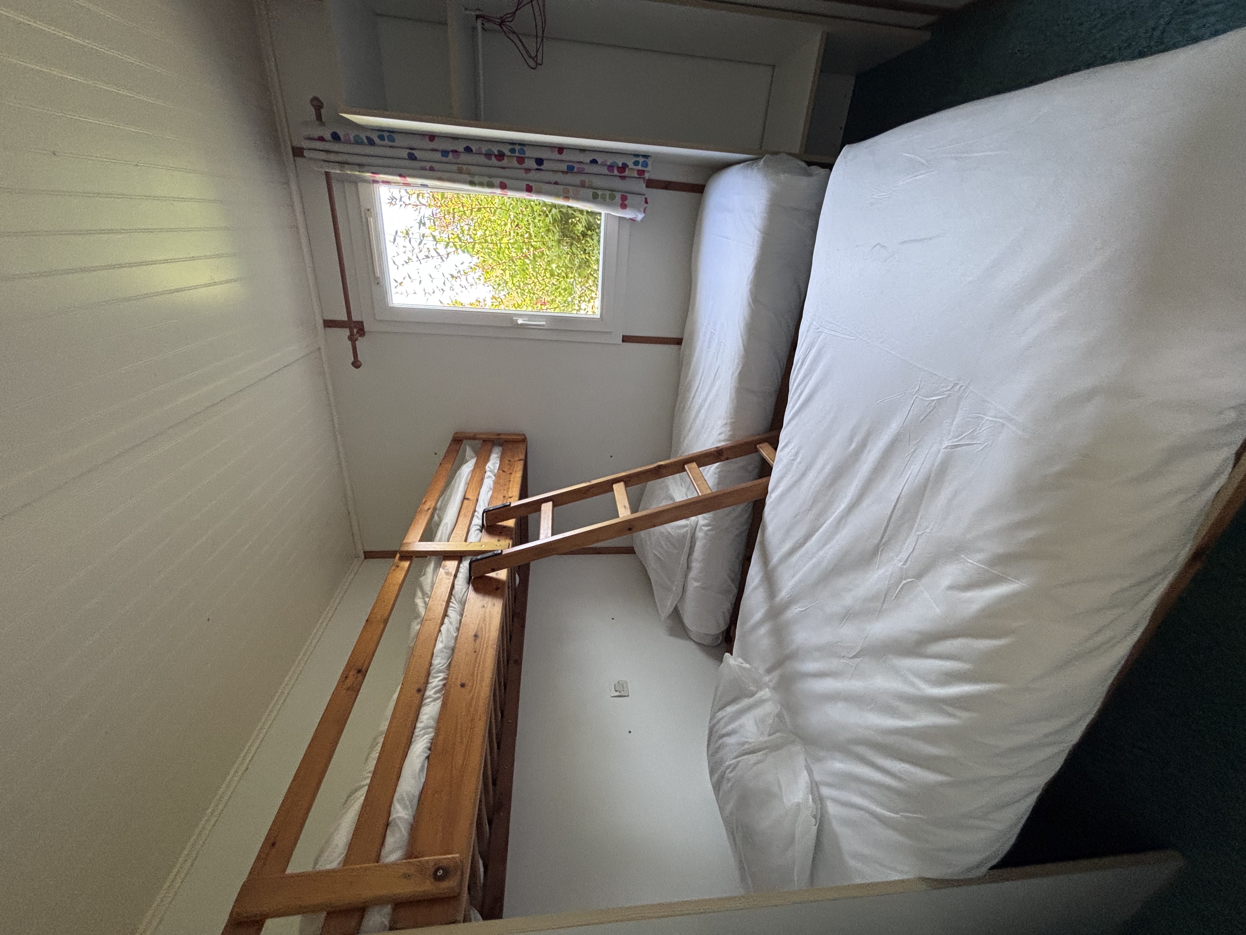 – Une chambre avec deux lits simples de 70x190cm, côte à côte et un lit superposé ou un canapé banquette