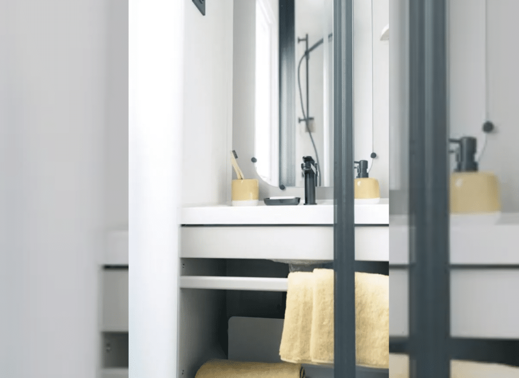 - Salle de bain : salle de bain moderne avec grande douche et meuble vasque WC séparés pour plus de confort et chauffe serviette